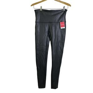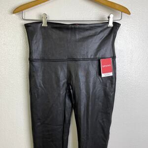 Spanx Faux Leather Leggings Black XL Womens Shaping Stretch Pull On NWT