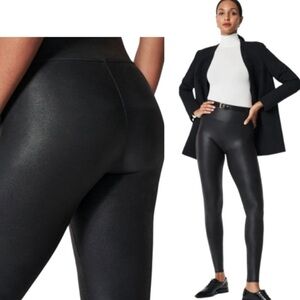 Spanx Faux Leather Leggings High Waist Stretch Shaping Black 2437 BEST SELLER M