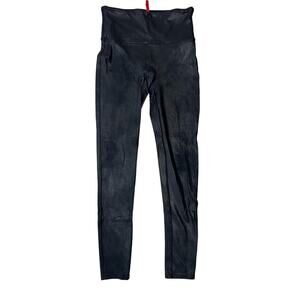 Spanx Faux Leather Leggings High Waisted Smoothing Sleek Black Size Large