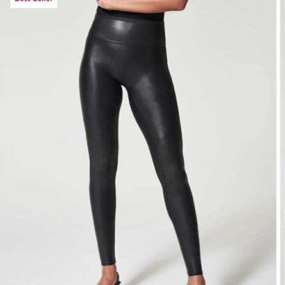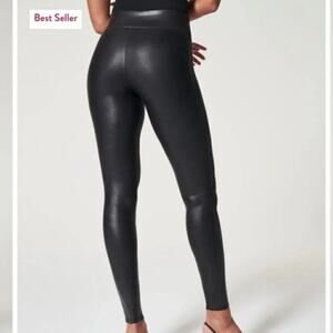 Spanx Faux Leather Leggings High Waisted Smoothing Sleek Black Size Small