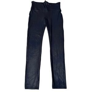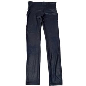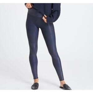 Spanx Faux Leather Leggings High Waisted Smoothing Sleek Dark Blue Size Large