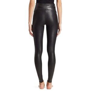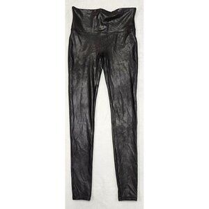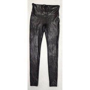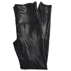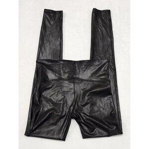 Spanx Black Faux Leather Leggings, Large. Shaping waistband with hidden power mesh for a structured fit. Stretchy Nylon/spandex, Machine wash. Pre-Owned, Look New!