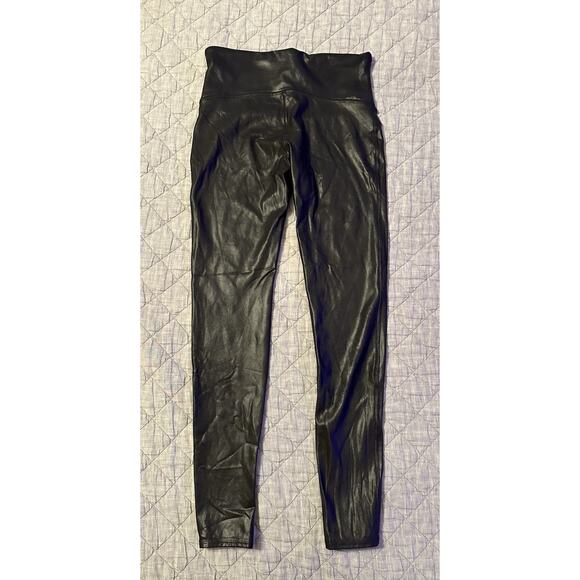 Spanx Faux Leather Leggings Large Black High Rise Shaping Slimming Shiny Edgy