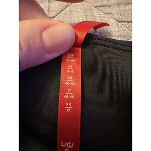 The product is a pair of Spanx faux leather leggings in size Large and black color. These high-rise leggings offer shaping and slimming effects, making them ideal for various occasions such as casual outings, parties, formal events, and business meetings. The ankle-length leggings feature a solid pattern, medium fabric wash, and blended fabric material. With a high-rise waist and a 27-inch inseam, these leggings are designed for a sleek and stylish look, perfect for those looking for a chic and edgy addition to their wardrobe.