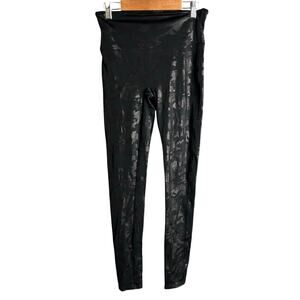 Spanx Faux Leather Leggings Matte Black Camo Size M