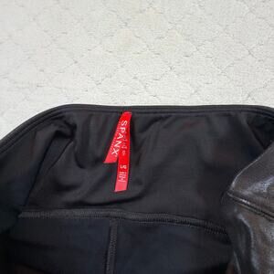 Spanx Faux Leather Leggings Power Waistband Shaping Compression Black Women Sz L