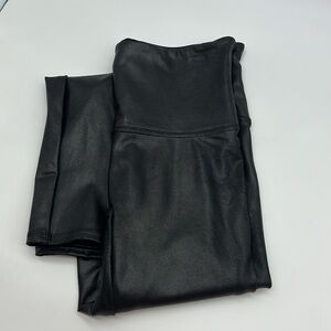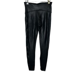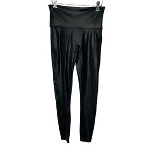 Spanx Faux Leather Leggings Women's Small Black Metallic Slimming Shaping