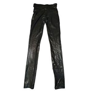 Spanx Faux Leather Leggings Women's Sz S Black High Rise Compression Full Length