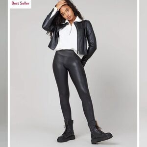 Faux Leather that flatters. This best-selling style features sleek, smoothing faux leather fabric that shapes and lifts and our contoured Power Waistband for core compression.