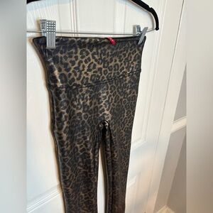 Spanx Faux Leather Metallic Leopard Print Leggings – Size S – Black/Gold
