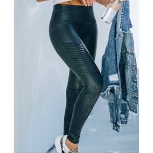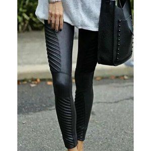 Spanx Faux Leather Moto Leggings Black Shiny Biker Motorcycle Edgy Skinny Pants