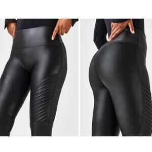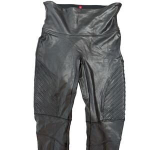 Spanx Faux Leather Moto Leggings High Waisted Ankle Length Black Size Medium