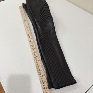 Spanx Faux Leather Moto Leggings Women M Black Pleated Stretch Shaping Elastic