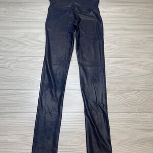 Spanx Faux Leather Navy Blue Tummy Control Leggings Womens size Small