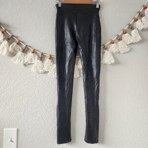 Spanx Faux Leather Shiny Black Full Length Shaping Comfort Leggings XS/P