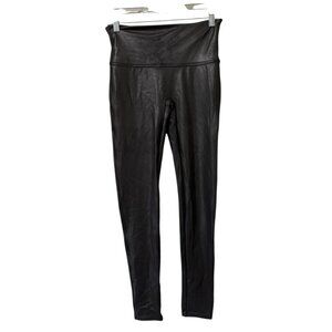 Spanx Faux Leather Skinny Leg Pants Soft Black Women Size Large Stretch Slimming