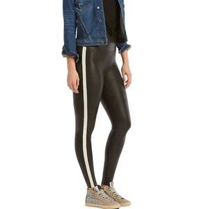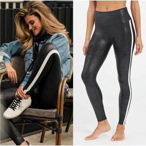 These Spanx faux leather leggings feature a sleek white stripe design and tummy control for a flattering fit. Perfect for casual or dressy occasions.