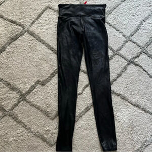 Spanx Faux Leather liquid Leggings black pull on high rise slimming medium