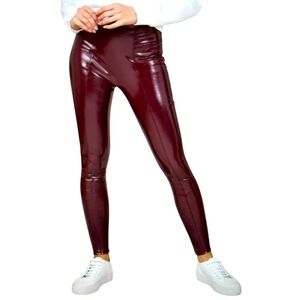 Spanx Faux Patent Leather Legging Pant Ruby Red Burgundy Size: Small