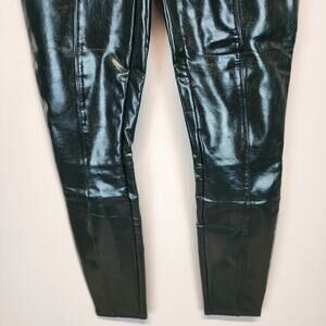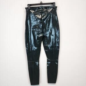 Spanx Faux Patent Leather Liquid Gloss Leggings Size M Deep Green Moto Biker 20301R
