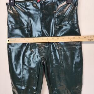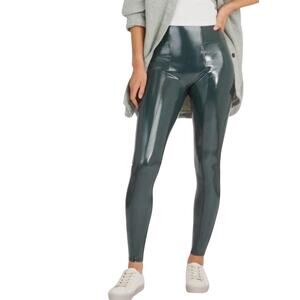 Spanx Faux Patent Leather Liquid Gloss Leggings Size M Deep Green Moto 20301R