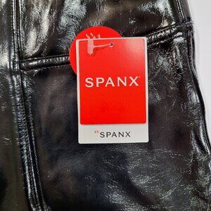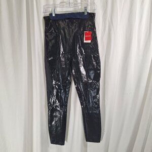 Spanx Faux Patent Leather Size Medium Leggings Black Shiny High Rise Pants NWT