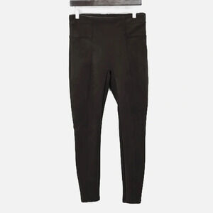 Spanx Faux Suede Leggings in Chocolate Brown - Size Large . Excellent pre-owned condition. The stretchy faux-suede fabric of these high-waist leggings elevates every look with compressing panels. Polyester and elastane, machine wash.