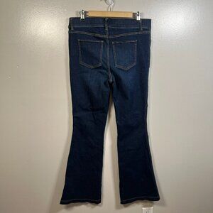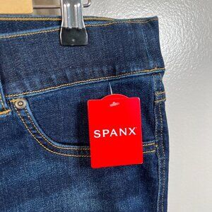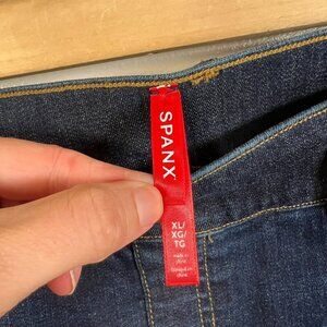 Spanx Flare Jeans Size XL High Rise Dark Wash Pull On Slimming Shaping Blue