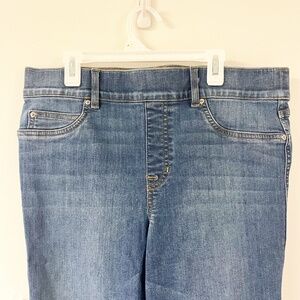 Spanx Flare Leg Pull On Denim Jeans Comfort Waist Vintage indigo Large Petite