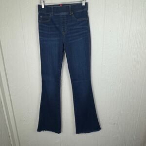 Spanx Flare Pull On Elastic Waist Jeans Dark Wash Size Small or 28x32" *Raw Hem