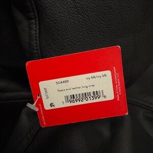 Spanx Fleece & Faux Leather Long Wrap Jacket In Very Very Black Size Small NEW