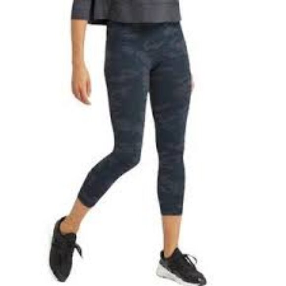 Spanx Gray Camo High Rise Look at Me Now Medium Comfort Stretch Cropped Leggings