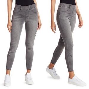 Spanx Gray Distressed Denim Jeans Skinny Pants 20213R Frayed Hem Size Medium