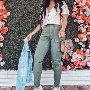 Spanx Green Cargo Stretch Twill Ankle Pants Size Large