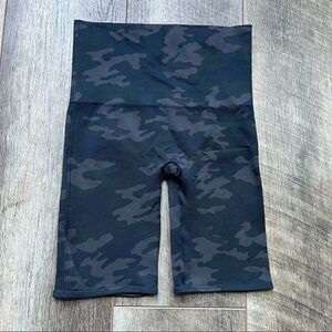 Spanx Look at Me Now Grey Black Camouflage High Waisted Biker Shorts Shape Wear