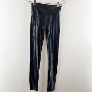 Spanx High Rise Compression Faux Leather Leggings Black Large Petite