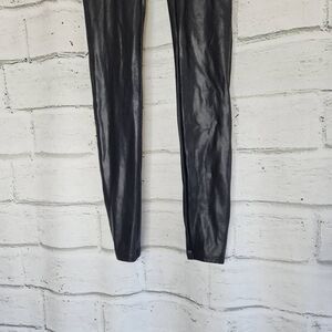 Spanx High Rise Faux Leather Leggings Size Small Solid Black Stretch