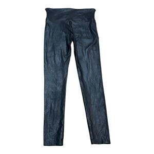 Spanx High Waisted Seamless Faux Leather Leggings in a size large. Contoured power waistband. Center seam. 87% nylon, 13% spandex. In great condition. Measures approximately 13 1/2” flat lay waist, 12” rise, 26” inseam. In great condition.
