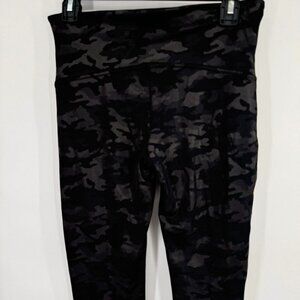 These Spanx leggings feature a stylish camouflage pattern, providing both comfort and style for various activities. Made with a high-waisted design, they offer support and flexibility.