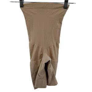 Spanx Higher Power Shorts Shapewear High Waisted Pull On Stretch Ruched Tan M