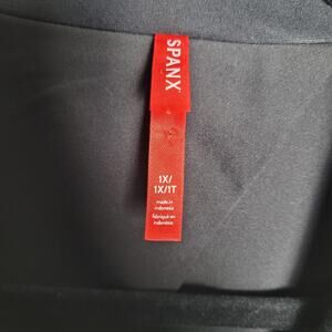 Classic SPANX womens 1X black one-button blazer in stretch ponte knit with gold-tone hardware.