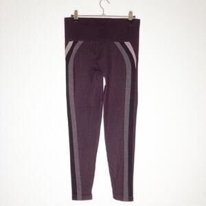 Spanx Jammy Plum maroon and pink seamless track stripe leggings. Pull-on style with wide waistband. Stripes down the sides. Seamless shaping. Size Extra Small. New with tags NWT. Nylon elastane blend. Machine wash.