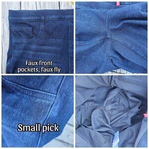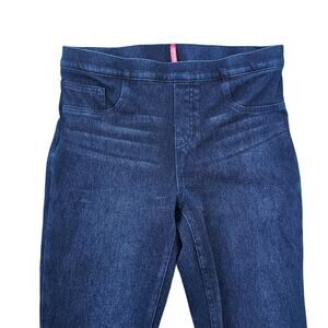 Spanx Jean-ish Leggings Dark Wash Stretch Knit Denim Look Size Large Ankle Crop