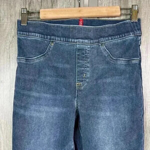 Spanx Jeans Womens Medium Skinny Raw Ham Distressed Blue Color Tummy Control
