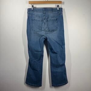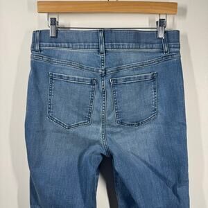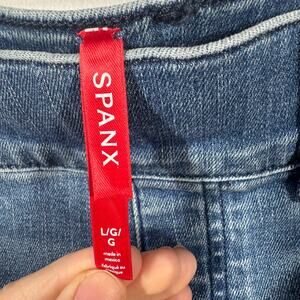 Spanx Jeans Women L Blue Indigo Cropped Kick Flare Pants Denim Pull On Spring
