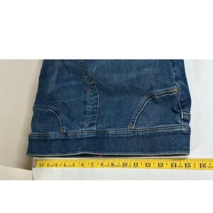 Spanx Jeans Womens Large Distressed Skinny Dark Wash Denim Cotton Lyocell Stretch Tummy Shaping Slimming Pull On Back Pockets Style 20203R Casual Everyday Office Travel High Rise Ankle Crop