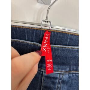 Spanx Jeans Womens Medium Dark Wash Distressed Skinny High Rise Pull On Raw Hem