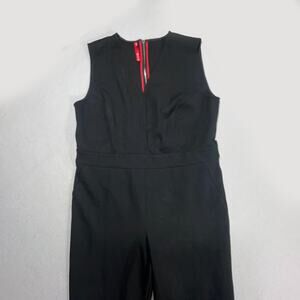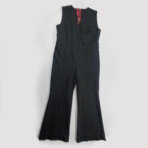 Spanx Jumpsuit Women XL Petite Black Sleeveless Zip Back Flared Leg Stretch