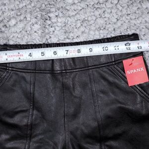 Women's Spanx Leather Like Jogger pants in noir black. High Rise pull on faux leather joggers. Style number 20283. Women's size small, real measurements shown in photos with pants laid flat: