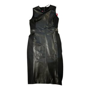 Spanx Leather Like Mixed Media Fitted Sheath Dress Size Medium XL Black new!